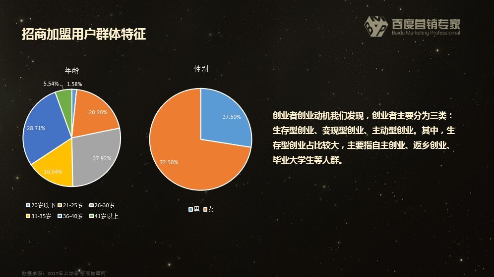 通过百度强大的后台数据分析得出,商务服务、招商加盟、网络服务这三大行业的行业现状、用户网络行为特征兴趣偏好、选择广告投放平台偏好、百度投放趋势的分析,深刻解读三大行业的发展现状及趋势以及在这种多变的互联网时代整合营销生态建设,为同行业的从业者打了一剂强心剂。