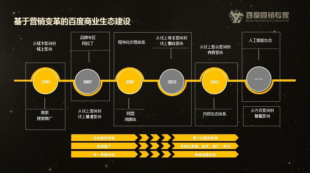 基于所有的变革,百度所提供的全案商业生态的建设:无论是从人找信息还是信息找人,还是潜在人群、品类人群、品牌人群,各类型之间边界的融合及迅速转化的趋势将会越来越显著。